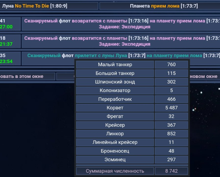 В итоге ловля отзыва с "оставить" +2 сек после возврата флота. Лом весь собран.