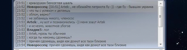 Thorin 12 Опубликовано 22 декабря, 2014 Жалоба Поделиться Опубликовано 22 декабря, 2014 И артеку я совет дал потому что вы его оклеветали.скрин сделал и отправил лично я.что же он подделал тогда?1. Не буду отрицать, в начале уни и ты, и я, и многие другие участвовали в полит.баталиях в чате, но никто никого не банил. Пришел Артек - сразу начались баны. Совпадение? Ну допустим.2. Уже человек 5 из чата заметили, что после общения с Артеком, который явно провоцирует, они получают баны. Еще одно совпадение? Нет - закономерность!3. Тебе, как одному из главных провокаторов чата, писать о пункте 7.6 - это верх лицемерия и вопиющая наглость. Пока ты, интернетный Сорос и Бжезинский, не появляешься со своими экономическими и политическими "прогнозами" и "аналитикой" в чате, там все хорошо.Ну да ладно. Можно говорить много и долго. Я вот что предлагаю. Раз уж пошла такая пляска, ядавайте сюда скидывать всю политоту Вада, если таковая появится в чате. В виде скринов. Модератор, не закрывайте пожалуйста тему.ps не рой яму другому - сам в нее упадешь. 1 Цитата Ссылка на сообщение Поделиться на другие сайты